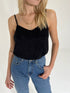 Dieses etwas länger geschnittene Top hat verstellbare Träger und besteht aus Viskose. Der Stoff ist matt mit einem dezent glänzenden Paisleymuster.